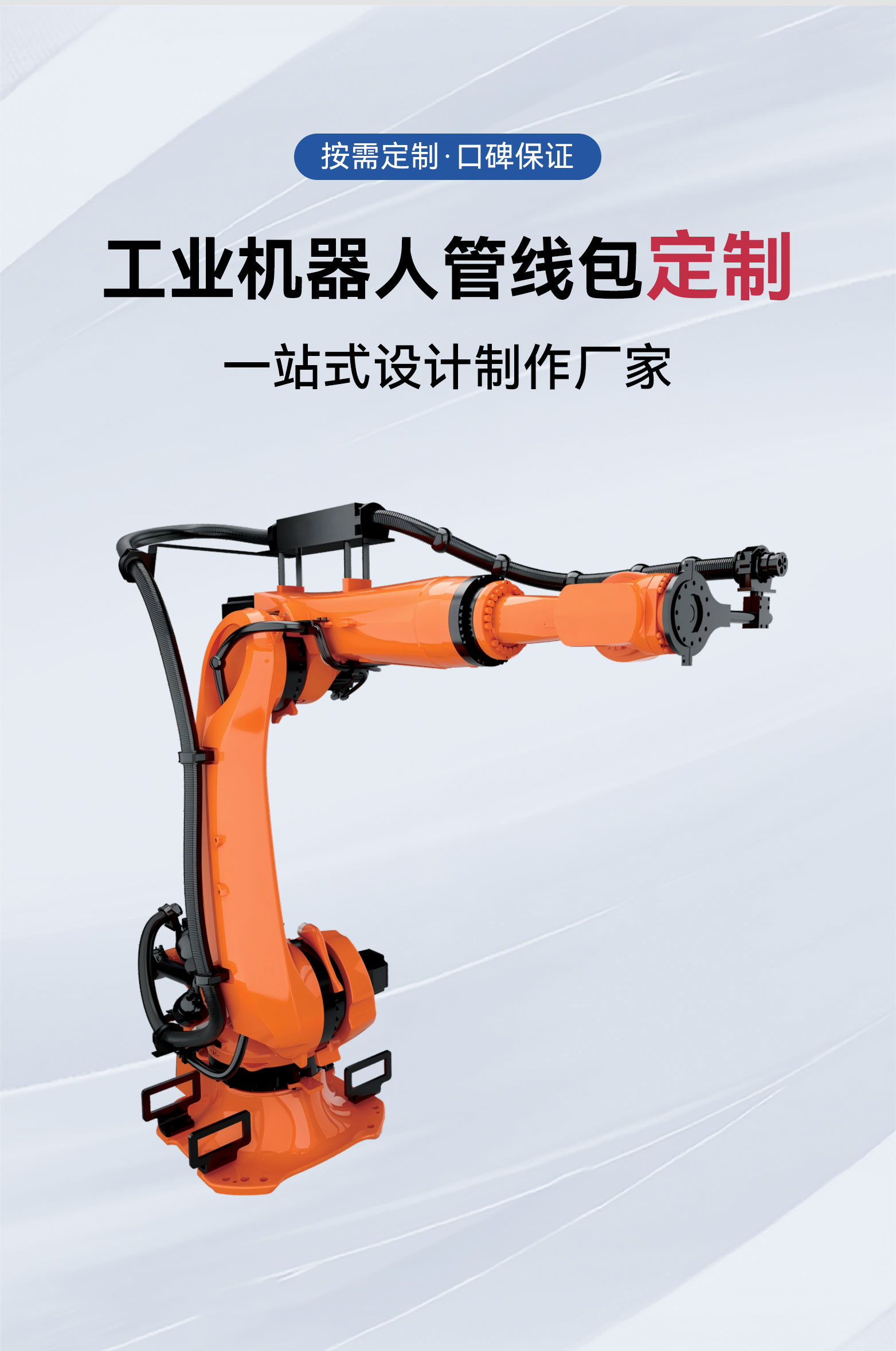 機(jī)器人管線包是工業(yè)機(jī)器人外部線纜、氣管、水管等線束的防護(hù)裝置,旨在保護(hù)管線免受磨損、拉扯,同時(shí)不影響機(jī)器人的運(yùn)動(dòng)軌跡。其主要功能包括延長管線壽命、簡化安裝與維護(hù),并適應(yīng)機(jī)器人高速、多角度的運(yùn)動(dòng)需求?。